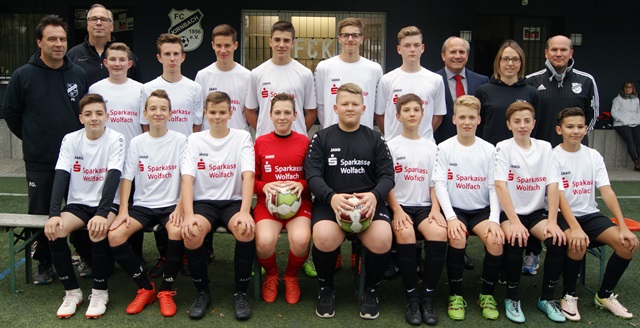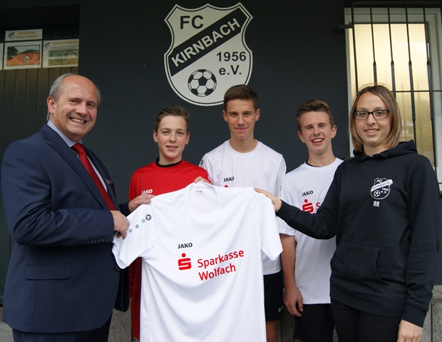 Im Vorfeld des Bezirkspokalachtelfinales gegen die SG SC Offenburg, hat Hans-Eberhard Rök als Vertreter der Sparkasse Wolfach den C-Junioren der SG Kirnbach einen Satz neuer Trikots offiziell übergeben. Diese „Spende“ erfolgte im Rahmen des Sponsoringvertrages zwischen dem FC Kirnbach und der Sparkasse Wolfach.