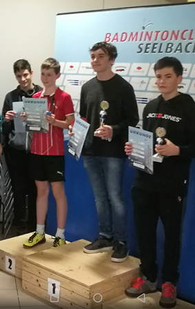 Auch Lukas Armbruster aus Hausach konnte in der Altersklasse U19 seinen 1. Platz verteidigen. Im Finale gewann er gegen Maxime Riebschläger 21:18 21:17.