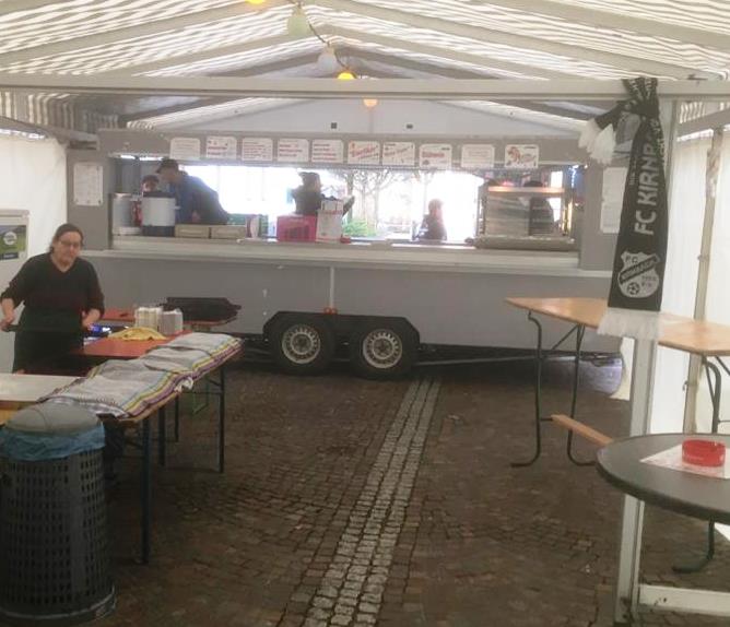 Dabei war von Vorteil, dass der Wagen auf zwei Seiten Verkaufsmöglichkeiten geboten hat, so dass man es sich entweder im Zelt gemütlich machen oder Getränke und Pizza für den Weg mitnehmen konnte.