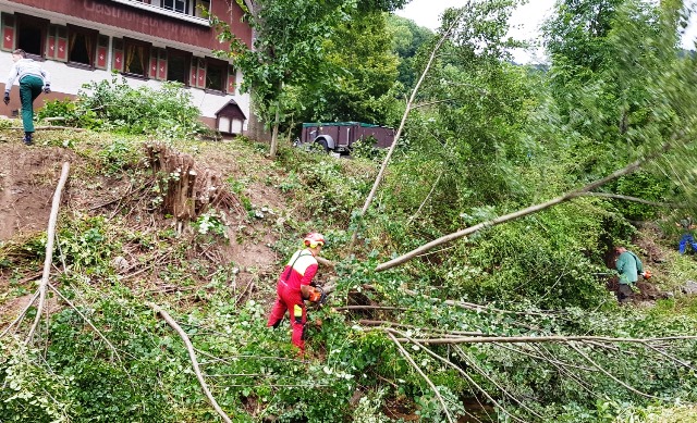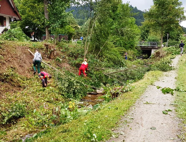 Ein gutes Timing bewies dabei die Stadtverwaltung Wolfach, die ab der Brücke, die den Wanderweg von einer Seite zur anderen Seite des Baches verbindet, eine Woche zuvor eine schon länger geplante Bachmauer ins Bachbett einbaute. Bei diesen Arbeiten musste vorab ebenfalls Gestrüpp weichen, so dass den Helfern vom FCK bereits im Vorfeld viel Arbeit abgenommen wurde.