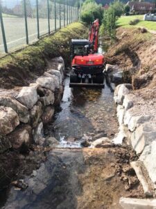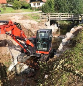 Stadt Wolfach mit Bagger bei den Bachmauerarbeiten eine Woche zuvor.