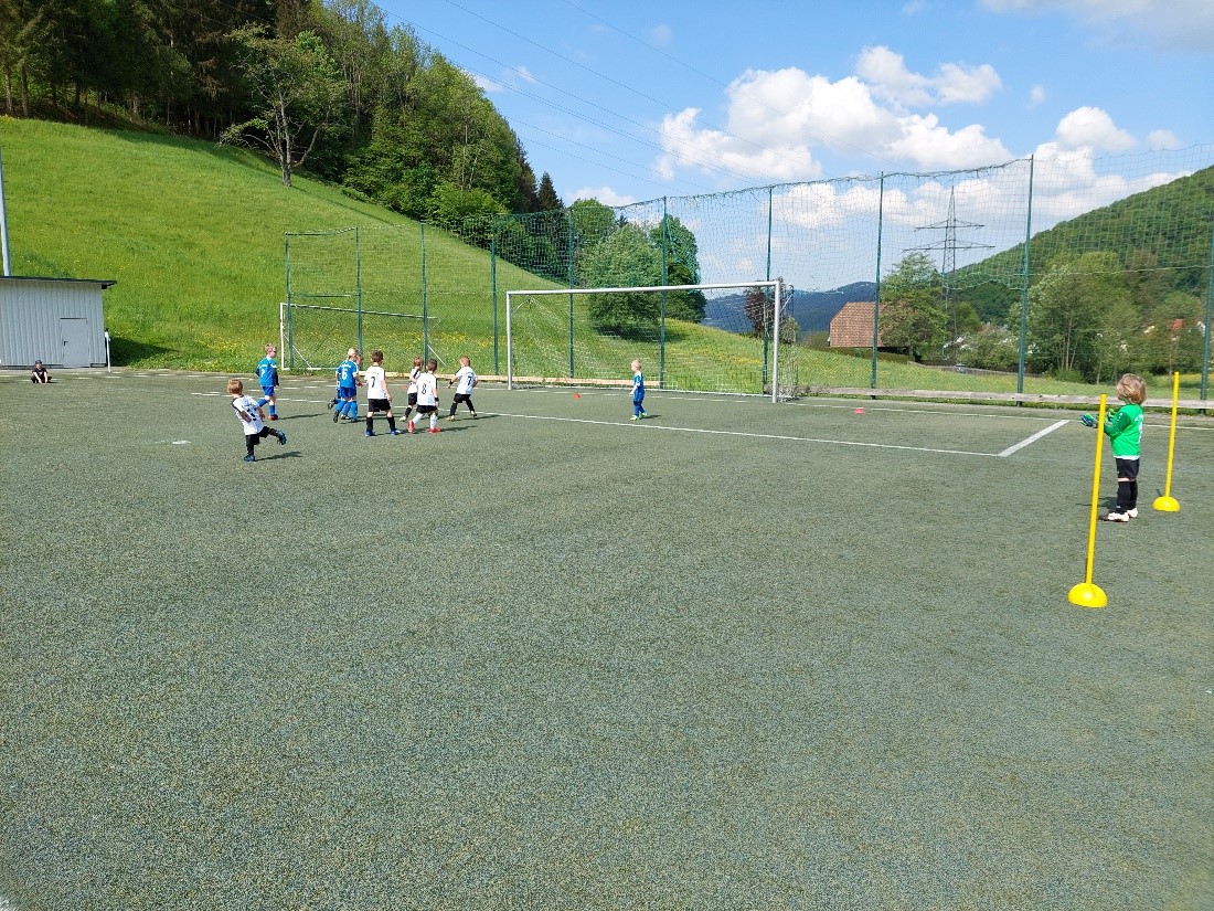 Denn am Sonntag 08.05.2022 sind auch hier die Spieltage wieder losgegangen. So kam an diesem Tag keine andere Mannschaft wie die Bambinis des FC Wolfach zu uns ins Eschenloch. So traf man sich um 10:00 Uhr am Sportplatz in Kirnbach, zog sich um und wärmte sich sofort auf. Auch der Gegner aus Wolfach war motiviert und wollte zeigen, was sie in den letzten Monaten unter Jan Bilharz als Trainer so gelernt haben. Als dann endlich gespielt wurde, waren alle froh und zeigten ihr bestes. Gespielt wurde auf zwei Felder mit 4 Feldspielern und einem Torwart. Nach 10 Minuten wurde eine Pause gemacht um etwas zu trinken, sich zu erholen oder sogar mit Sandwich oder Kuchen zu stärken. Nach der Pause tauschten die Mannschaften die Felder sodass jede Mannschaft des FC Wolfach gegen beide Mannschaften des FC Kirnbach gespielt hat oder die Trainer haben die Trainer haben die Mannschaften erneut neu zusammengestellt. Nach diesem Wechsel und weiteren 10 Minuten schönem Fußball unserer kleinsten, gab es erneut eine Pause und einen weiteren Wechsel der Felder mit 10 Minuten Fußball. Nach dem die Kids 4 x 10 Minuten gespielt haben, war der Spieltag beendet und man konnte sich auf Kirnbacher Seite über viele Siege und richtig gute Spiele freuen. Die Trainer sind von Ihren Jungs und Mädchen sehr begeistert, aber auch die Eltern waren stolz auf die gezeigten Leistungen der Mannschaften. Nun freuen sich die Kinder auf die nächsten Spieltage und dann bald anstehenden Turniere hin. Bis dahin wird fleißig weitertrainiert.
