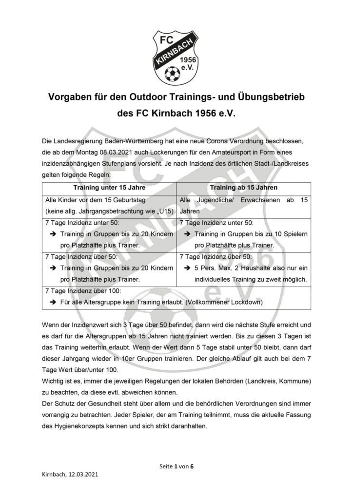 Anbei das aktuelle Hygienekonzept für den Trainingsbetrieb Hygienekonzept