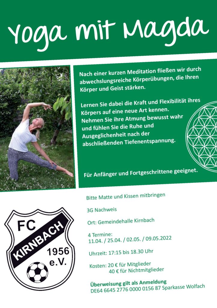 Wieder einmal bietet die liebe Magda in den kommenden Monaten Yoga Stunden an, welche für FCK Mitglieder stark vergünstigt sind! Alle wichtigen Infos dazu finden Sie hier: