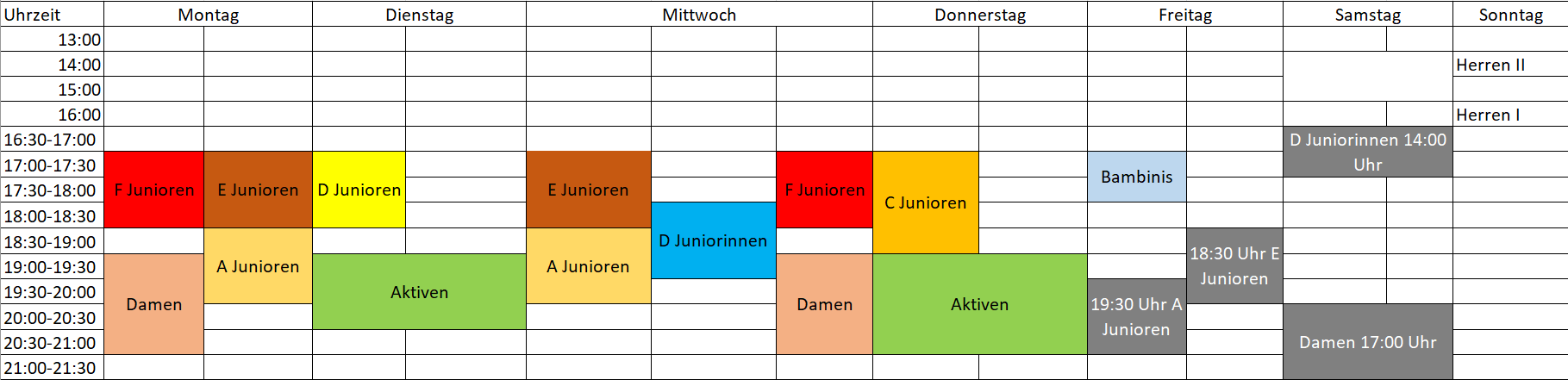 Trainingszeiten Fussball-Jugend